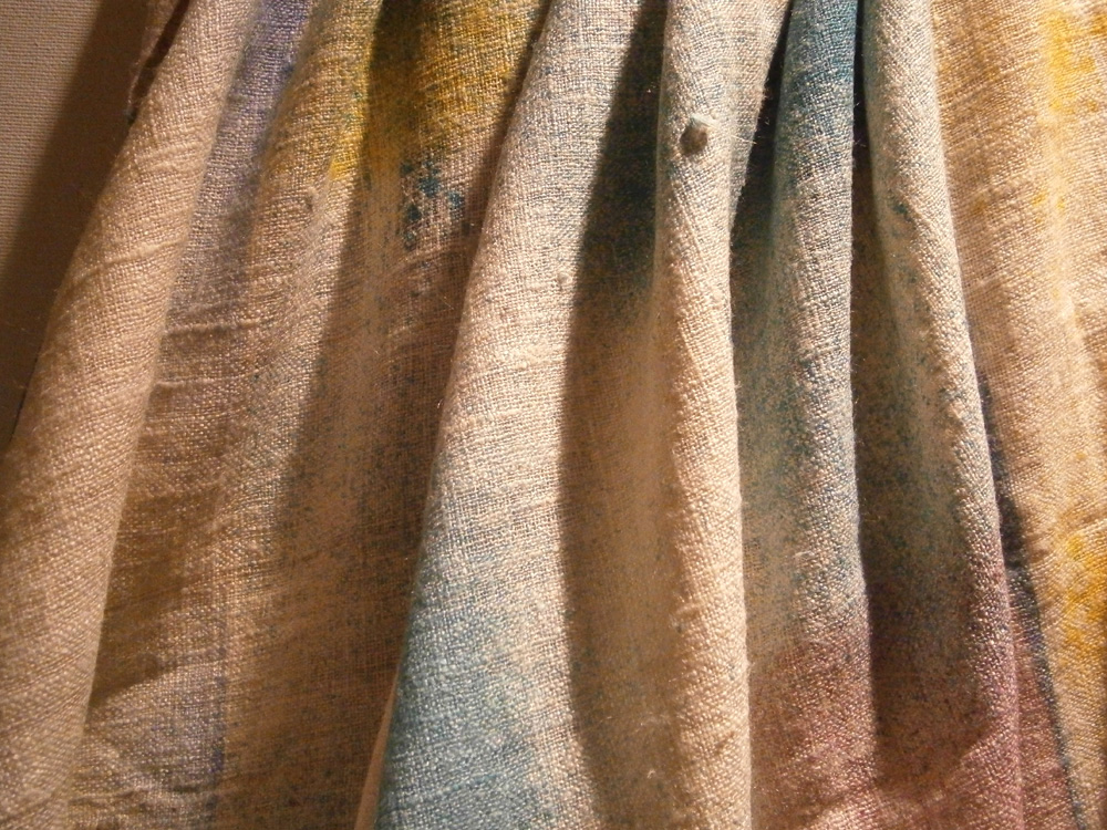 ERI 100% SILK . I only use it at the moment for large Wraps ( 200 x 70 cm). The silk is also called the “Peace Silk” or “Vegan Silk”, as the silkworms leave their cocoons to live their natural lives as moths. The silk thread is then unwound or cut from the empty cocoon. The silk has a lot more texture than the others and looks quite beautiful. It has a very similar look and feel to linen.